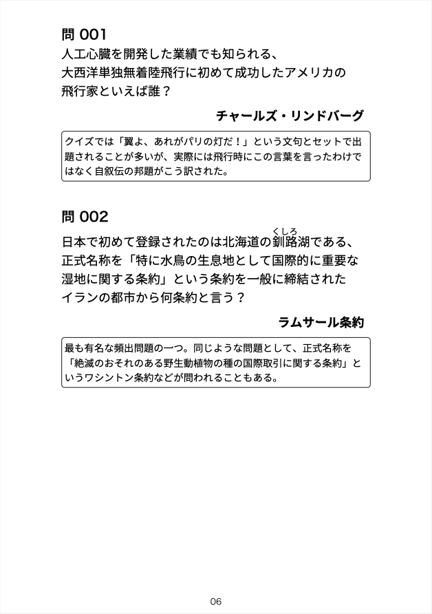 競技クイズで頻出傾向にある題材から作問した、初心者や中級者の基礎知識となる300問。